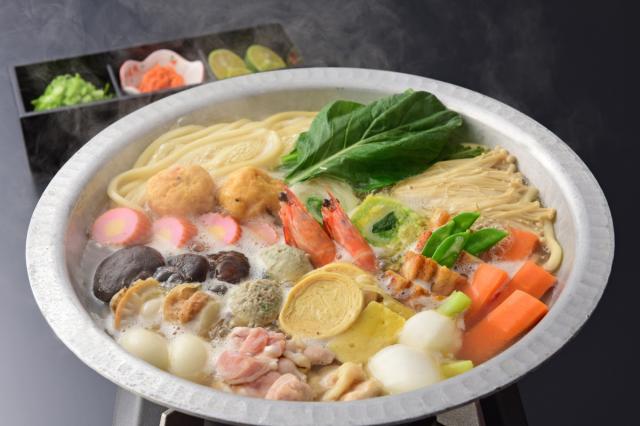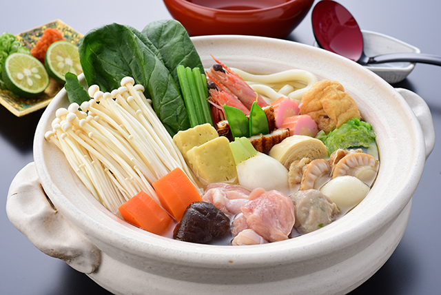 - 鶏肉、鰯つみれ、海老、白菜巻、椎茸旨煮 など